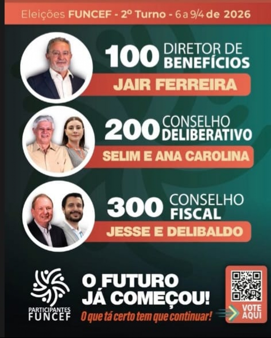 O segundo turno das Eleições Funcef 2026 começa na próxima segunda-feira (6) e segue até o dia 9 de abril. É fundamental a participação dos dos empregados e empregadas da Caixa Econômica Federal na votação que vai definir os representantes dos participantes na Diretoria de Benefícios, no Conselho Deliberativo e no Conselho Fiscal da Fundação pelos próximos quatro anos.